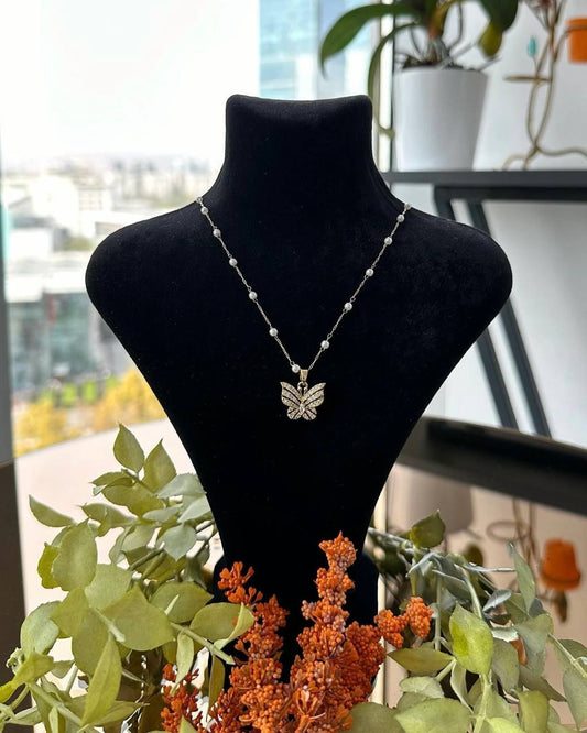 TükendiZirkon Taşlı Kelebek Kolye Gold