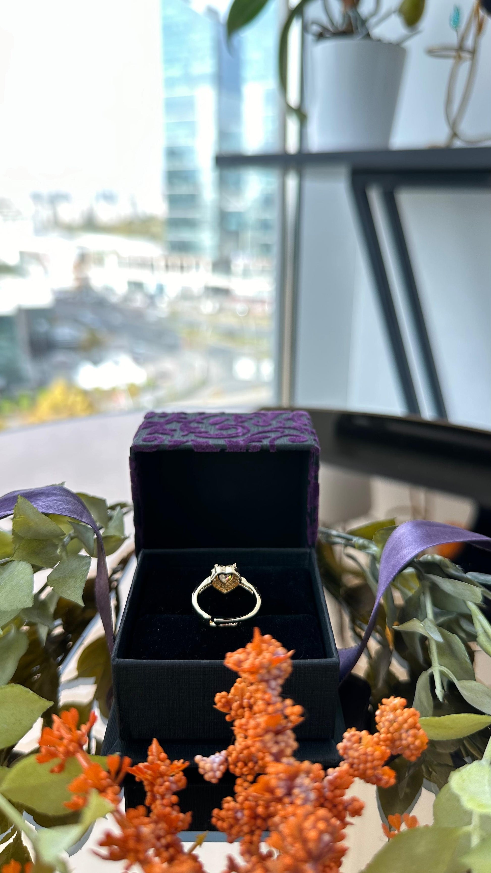 Işıl ışıl parlayan zirkon kalp taşın etrafındaki küçük taşlar daha da fazla ışıltı getirmiş bu dikkatleri üzerine çeken VIP yüzükte...