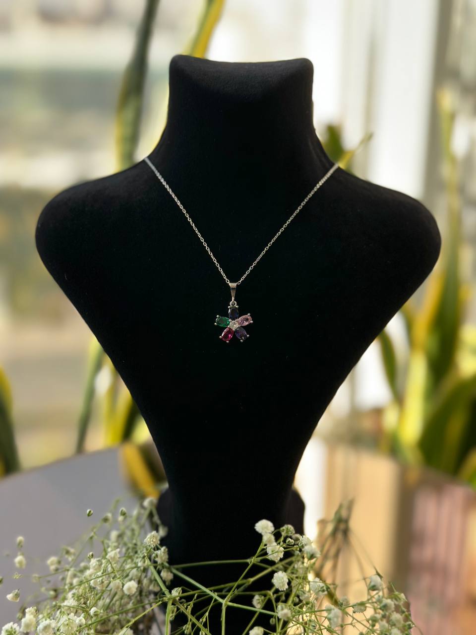 Her bir kolunda ayrı renk olan bu gümüş tasarım kolyemizin kombininizde fark yaratacağı kesin...