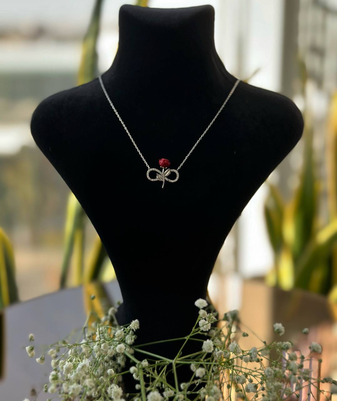 Kırmızı gül ve sonsuzluk sembolünün zarif, ışıltılı birleşimi...